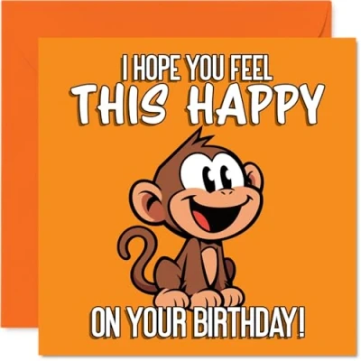 Cute Birthday Card Bursting with Cheer Cartoon Monkey on a Vibrant Orange Backdrop Sure to Lift Anyone's Spirits 145mm Square, Envelope Included