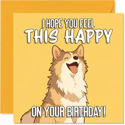 Radiates happiness with a beaming dog and bold yellow backdrop, spreading instant smiles to anyone who opens it. Birthday card with a light-hearted design style Features a charming, happy dog illustration that stands out brilliantly against a lively yellow background. Recyclable and printed in UK for a considerate choice Printed on quality gloss single sided board with an uncoated inside, so there's no smudging when writing inside. Printed on 360 micron stock for a confident, premium feel Blank inside, giving you plenty of space to pen your own special birthday wishes. Envelope included for easy gifting. The 145mm Square format is convenient to display or post Designed and printed in the UK using recyclable FSC-certified - a card you can feel good about sending