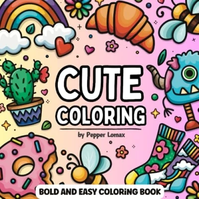 Cute Bold and Easy Coloring Book: 50 Simple Designs of Various Objects with Thick Lines for Adults & Kids to Color