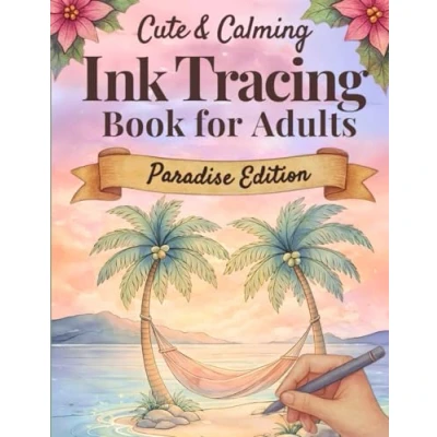 Cute & Calming Ink Tracing Book for Adults Paradise Edition: Trace the White Lines with a Black Pen to Reveal Beautiful Tropical Scenes of Calm and Escape