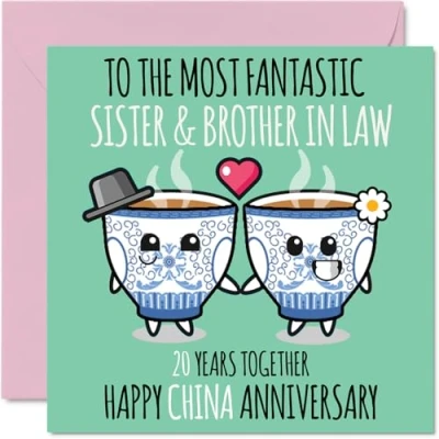 Cute China Anniversary Card for Sister & Brother In Law 20 Years Together Happy 20th Wedding Cards Sister, 145mm x Greeting Twentieth Anniversaries