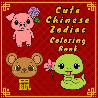 Cute Chinese Zodiac Coloring Book: Animals with Symbols & Flowers
