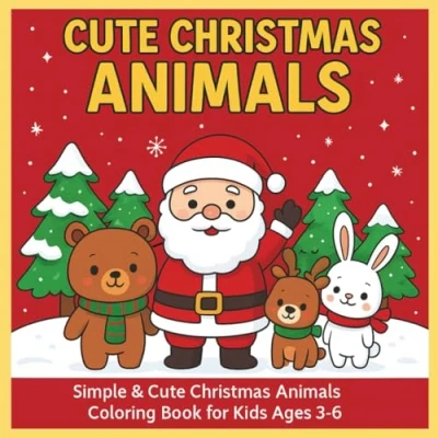 Cute Christmas Animals: Simple & Adorable Animals Coloring Book for Kids Ages 36