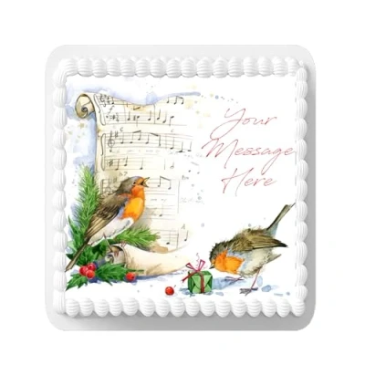 Cute Christmas Singing Robin PERSONALISED 7.5 inch SQUARE on Decor Icing Sheet Edible Cake Topper Perfect for Decorating Larger Cakes