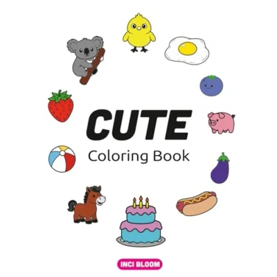 Cute Coloring Book: Fun Food, Adorable Animals & Everyday Objects 67 Single Sided Pages for Relaxing and Creative
