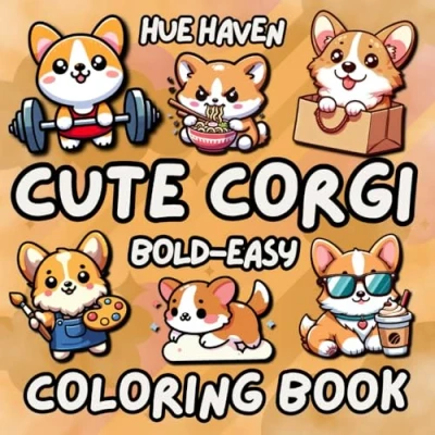 Cute Corgi: Bold and Easy Coloring Book for Kids Adults, Simple Stress Relief Corgis Designs.