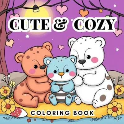 Cute & Cozy: A and Simple Coloring Book for Adults Teens 50 Adorable Animal Themed Pages Relaxation, Fun, Stress Relief