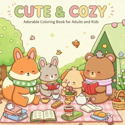 Cute & Cozy: Adorable Coloring Book for Adults and Kids: Relaxing Illustrations of Animals, Cozy Scenes, Tea Time, Nature Stress Relief Fun