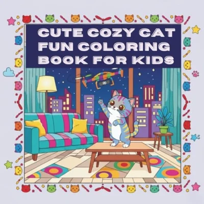 Cute Cozy Cat Fun Coloring Book For Kids: Bold and Easy