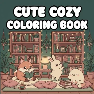 Cute Cozy Coloring Book: Adorable Relaxing Scenes with Animals, Warm Aesthetic & Comforting Bookish Vibes