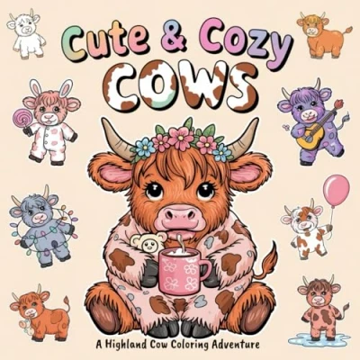 Cute & Cozy Cows: A Highland Cow Coloring Adventure: Adorable and Relaxing Pages for Kids, Teens, Adults Who Love Cows