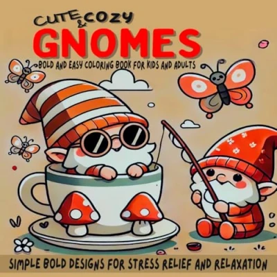 Cute & Cozy Gnomes: Bold and Easy Coloring Book for Kids Adults, Simple Designs Stress Relief Relaxation.