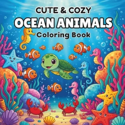 Cute & Cozy Ocean Animals: Bold Easy Coloring Book For Kids Adults