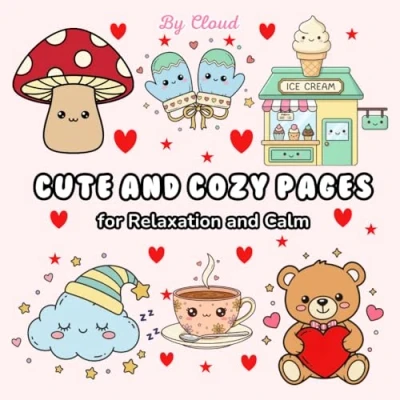 Cute & Cozy Pages for Relaxation And Calm Adults Kids: Coloring Book Bold Easy, Simple Big Designs Featuring Animals, Patterns, Things Many More
