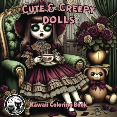 Cute & Creepy Dolls Gothic Kawaii Coloring Book for Kids, Teens, and Adults: Spooky Cutie Goth Pages with Black Background Relaxation (Cute Creepy)