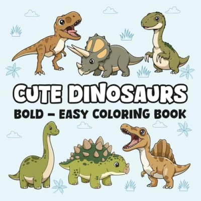 Cute Dinosaurs: Coloring Book for Kids and Adults, 50 Bold Easy Designs Relaxation & Fun (Bold Coloring)