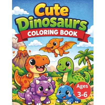 Cute Dinosaurs Coloring Book: Fun & Easy Pages with Adorable for Kids Ages 36 (Cute Book)