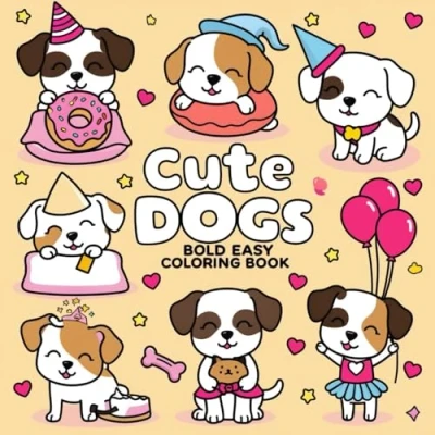 Cute Dogs Bold and Easy Coloring Book: Simple Large Designs Featuring Kawaii Dog Puppies for Adults, Seniors Kids