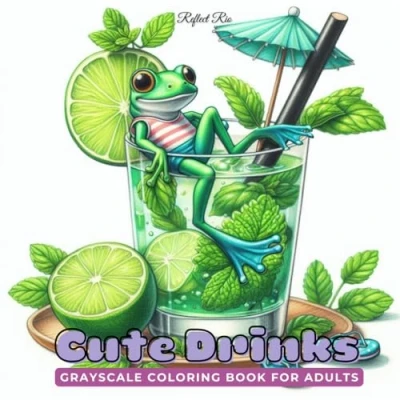 Cute Drinks Coloring Book: Adorable Animals in Beachwear Enjoying Tropical A Fun Adult Grayscale Book for Stress Relief (Fantasy Adults)