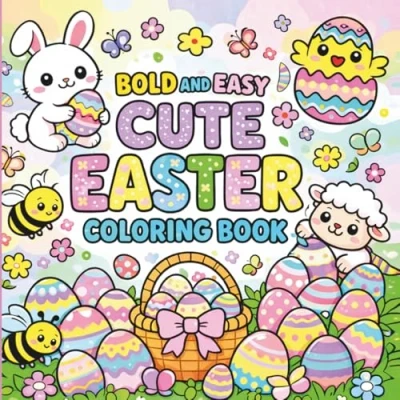 Cute Easter Coloring Book Bold and Easy Designs: 50 Large, Simple Pages for Kids Ages 3+ Relaxing Fun Adults