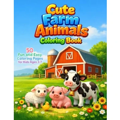 Cute Farm Animals Coloring Book: Easy and Fun Animal Pages for Toddlers, Preschoolers, Kids Ages 37