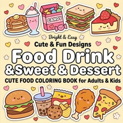 Cute Food Coloring Book for Adults and Kids: Bold Easy Designs Featuring Desserts, Snacks, Street & Treats Relaxing Fun
