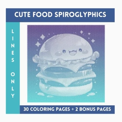Cute Food Spiroglyphics Lines Only: One Color Coloring Book With Unique Ilustraions To Discover