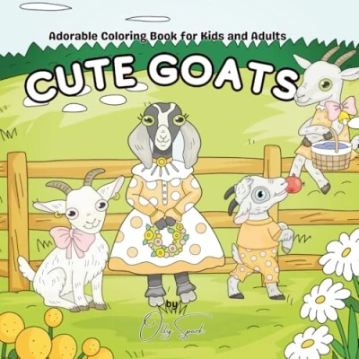 Cute Goats Coloring Book: 26 Adorable Goat Illustrations for Kids and Adults: Relaxing, Fun, Pages Creativity Stress Relief