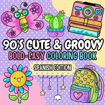Cute & Groovy Coloring Book for Adults and Kids: Spanish Book, Bold Easy, Simple Big Designs Relaxation Reliving the 90's in ... Book) (Bold Easy