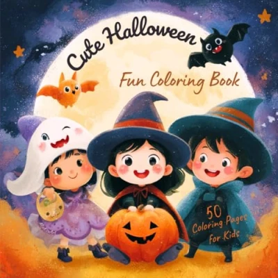 Cute Halloween 50 Fun Coloring Pages for Kids: A Spooky and Adorable Book Ages 4 10 (Cute Books Kids)