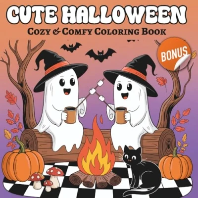 Cute Halloween: Coloring Book for Adults & Kids Spooky Sweet, Cozy Scenes Relaxation