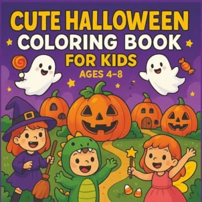 Cute Halloween Coloring Book for Kids Ages 48: Fun and Easy Pages with Pumpkins, Ghosts, Cats, Costumes, More!