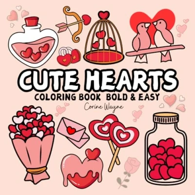 Cute Hearts Coloring Book Bold & Easy: Simple and Cozy Designs Valentine's Day Inspired for Adults Teens ,Romance Illustrations with Thick Lines (Bold Easy)