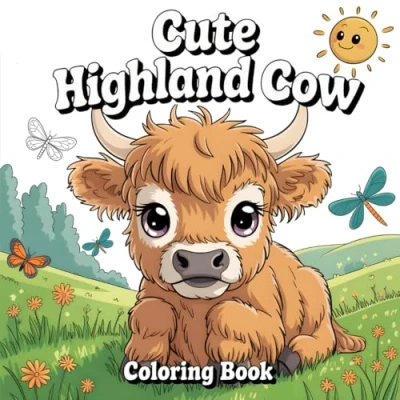 Cute Highland Cow Coloring Book: Beautiful and Scottish Cows Bold Simple Illustrations for Relaxation Creativity
