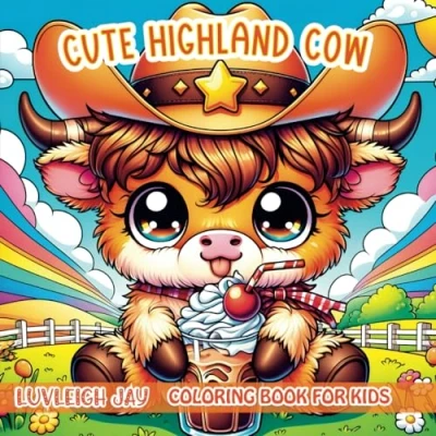Cute Highland Cow Coloring book for Kids: 50 Fun and adorable Scottish Calf designs Children, Boys Girls