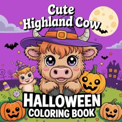Cute Highland Cow Halloween Coloring Book: Beautiful and Spooky Scottish Cows Easy Illustrations for Relaxation Creativity