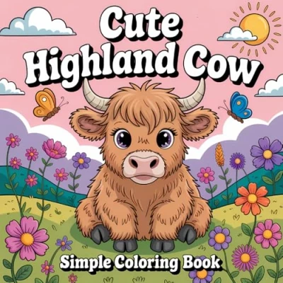 Cute Highland Cow Simple Coloring Book: Beautiful and Scottish Cows Bold Illustrations for Relaxation Creativity