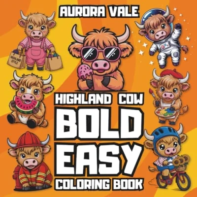 Cute Highland Cows Coloring Book: Easy and Bold Designs for Kids Adults Simple, Stress Relief Fun Cow