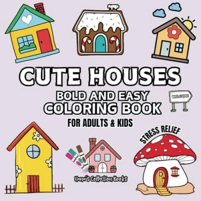 Cute Houses: Coloring Book for Adults and Kids, Bold Easy, Simple Big Designs Relaxation, Large Print Designs: Featuring a Variety of ... Books Stress Relief & Kids)