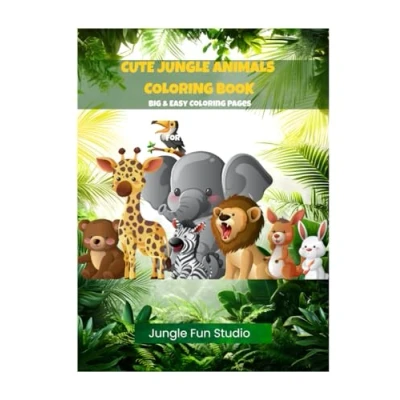 CUTE JUNGLE ANIMALS Coloring BOOK: Fun & Easy Pages For Kids Ages 3 6
