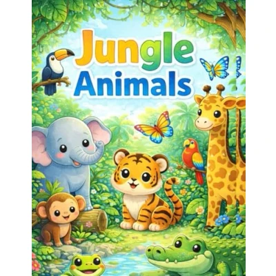 Cute Jungle & Safari Animals Coloring Book for Kids: Fun Easy Pages with Adorable Toddlers and Kids Ages 38