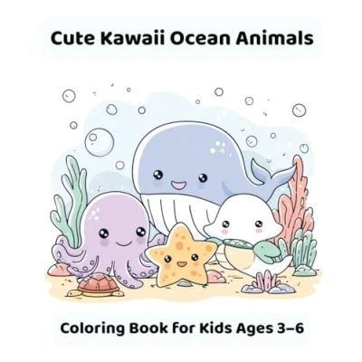 Cute Kawaii Ocean Animals: Coloring Book for Kids Ages 36