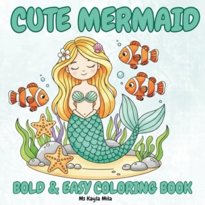 Cute Mermaid: Bold and Easy Coloring Book for Kids Ages 4 8 (Bold & Coloring)