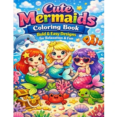 Cute Mermaids Coloring Book: Bold & Easy Designs for Relaxation Fun: Adorable Mermaid Pages with Simple, Stress Free Kids, Teens Adults