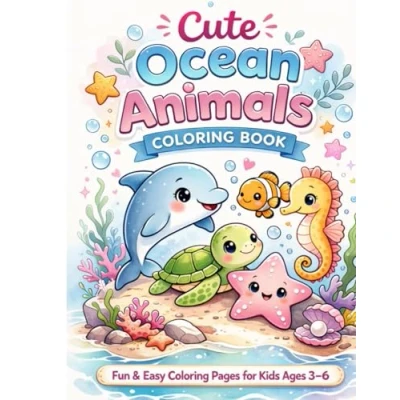 Cute Ocean Animals Coloring Book: Fun and Easy Pages for Kids Ages 3 6