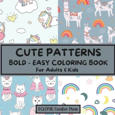 CUTE PATTERNS: BOLD & EASY Coloring Book for ADULTS KIDS, 52 Designs, Perfect Relaxation Stress Relief (BOLD Books)