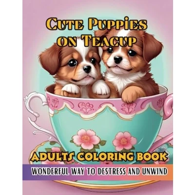 Cute Puppies on Teacup Coloring Book: Adults Book a wonderful way to destress and unwind