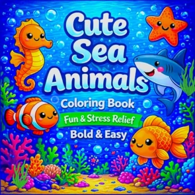 Cute Sea Animals: Coloring Book Fun & Stress Relief for Kids and Adults, Bold Easy, Kawaii Animals with Simple Designs Relaxation (Bold Easy Books Adults)