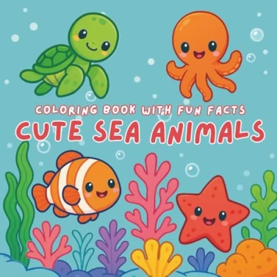 Cute Sea Animals Coloring Book: Ocean Creatures Pages with Fun Facts for Kids Ages 36