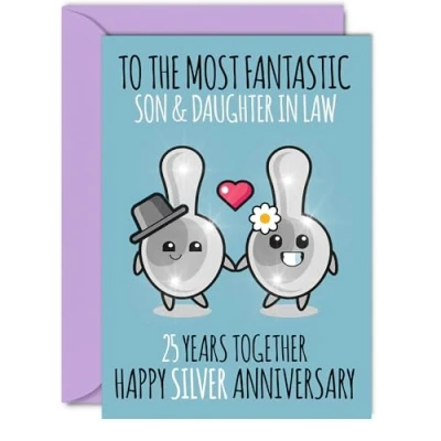Cute Silver Anniversary Card for Son & Daughter In Law 25 Years Together Happy 25th Wedding Cards Son, A5 Greeting Twenty Fifth Anniversaries